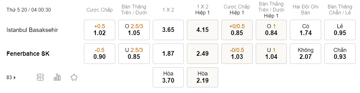Tỉ lệ kèo Basaksihir vs Fenerbahce