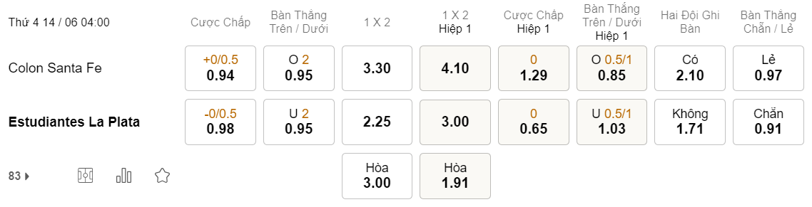 Tỉ lệ kèo Colon vs Estudiantes