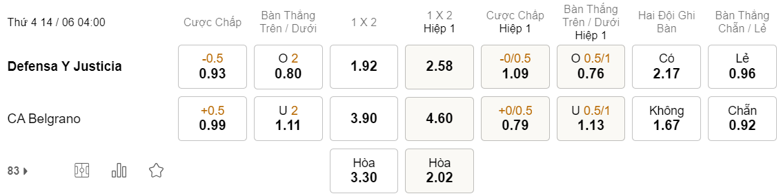 Soi kèo hiệp 1 Defensa Justicia vs Belgrano: 1.09*0/0.5*0.79