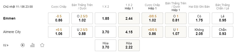 Soi kèo châu Á Emmen vs Almere City: 0.86*0.5*1.06