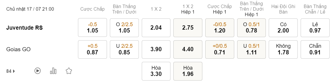 Soi kèo hiệp 1 Juventude vs Goias: 1.20*0/0.5*0.71