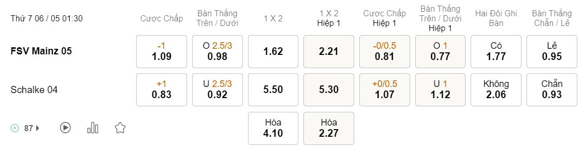 Tỉ lệ kèo Mainz vs Schalke
