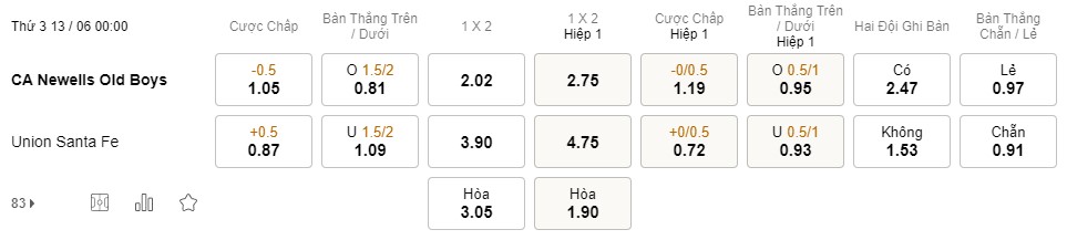 Tỉ lệ kèo Newell’s Old Boys vs Union