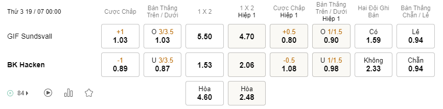 Soi kèo châu Á Sundsvall vs Hacken: 1.03*1*0.89