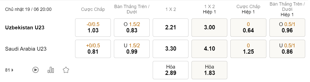 Soi kèo hiệp 1 U23 Uzbekistan vs U23 Saudi Arabia: 0.64*0*1.25