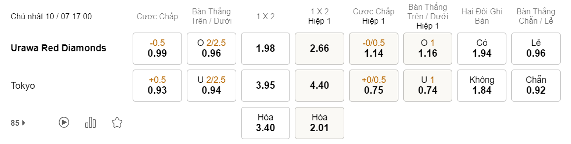 Tỉ lệ kèo Urawa Reds vs Tokyo